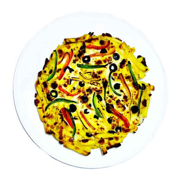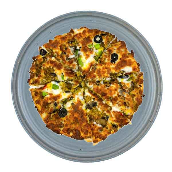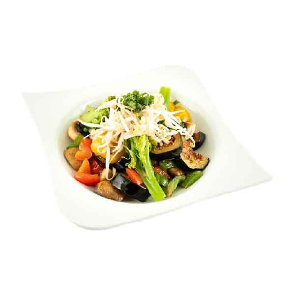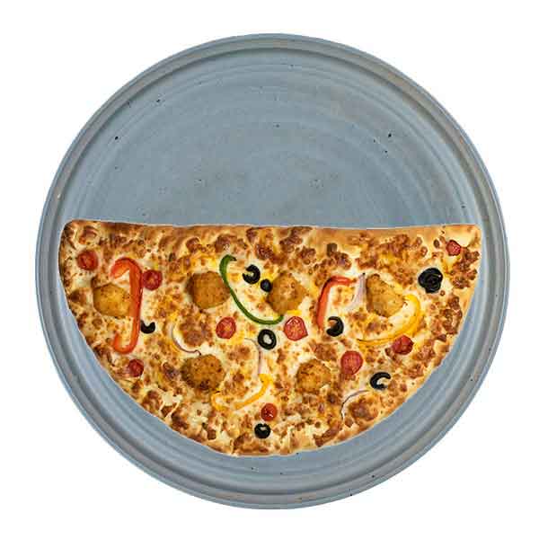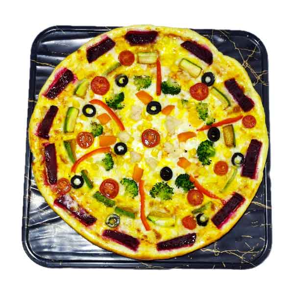۱۰۰ گرم پنیر مازارلا، بادمجان، کدو، گوجه گیلاسی، ذرت، نخود فرنگی، قارچ، فلفل دلمهای، سس راتاتو، سس ناپول