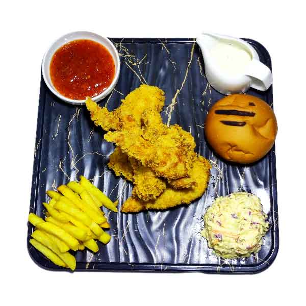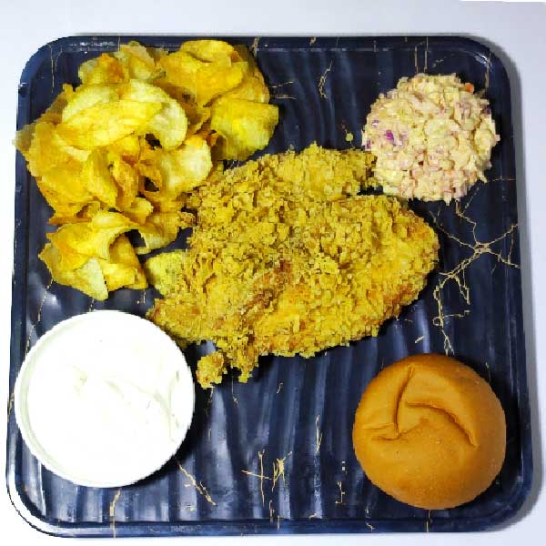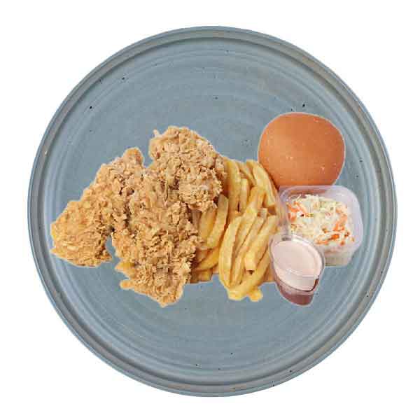 ۲۵۰ گرم فیله مرغ گریل شده، ادویه مخصوص، سیب زمینی سرخ کرده