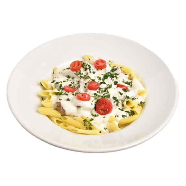 پاستا، مرغ، شیر، خامه، قارچ، پنیر پارمزان، ادویه