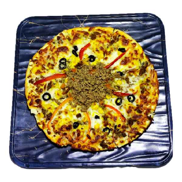 ۱۵۰ گرم گوشت سر دست چرخ شده، ۱۰۰ گرم پنیر مازارلا، قارچ، فلفل دلمهای، سس ناپول